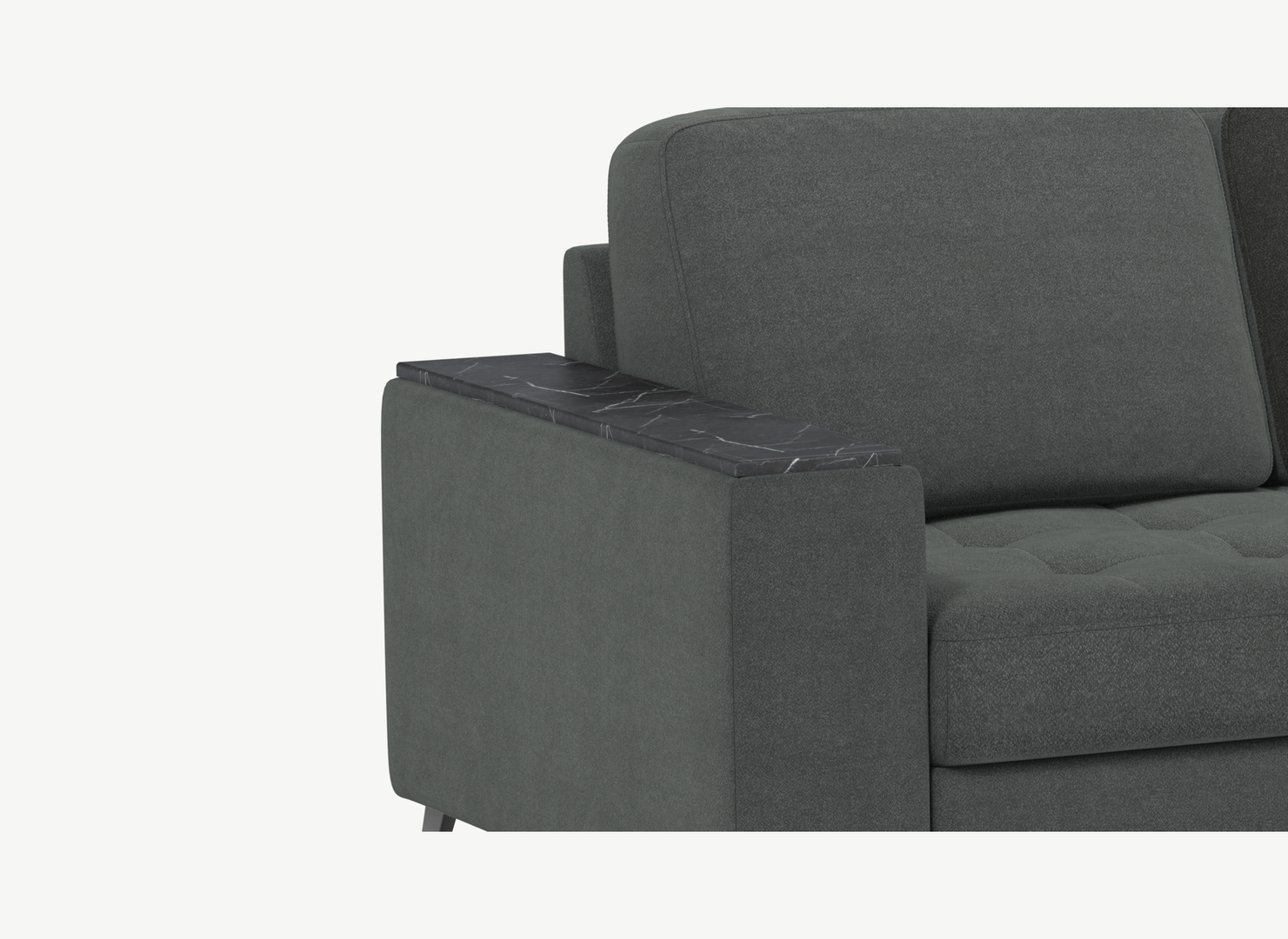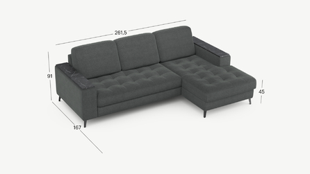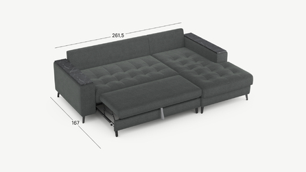 Секция «канапе» обеспечивает дополнительное пространство для отдыха, благодаря которому Вы можете располагаться с максимальным комфортом, удобно вытянув ноги. Под данной секцией расположен вместительный бельевой короб.