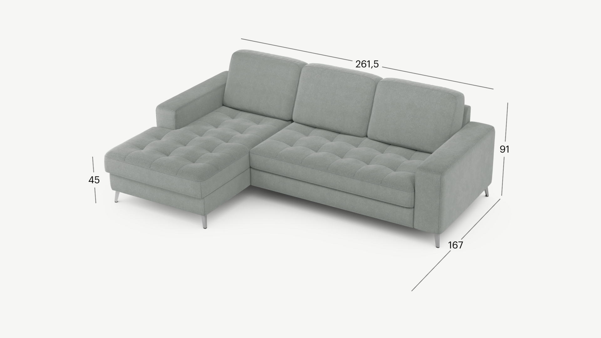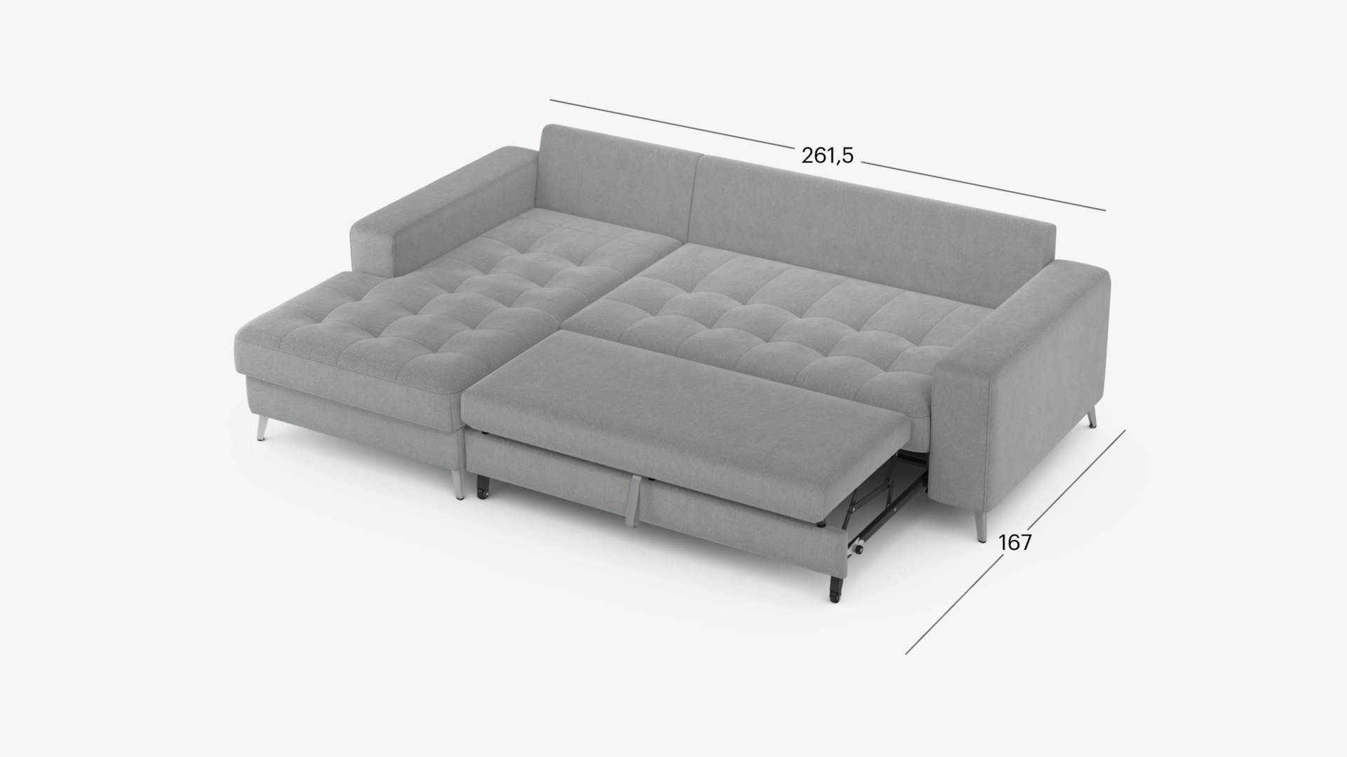 Секция «канапе» обеспечивает дополнительное пространство для отдыха, благодаря которому Вы можете располагаться с максимальным комфортом, удобно вытянув ноги. Под данной секцией расположен вместительный бельевой короб.