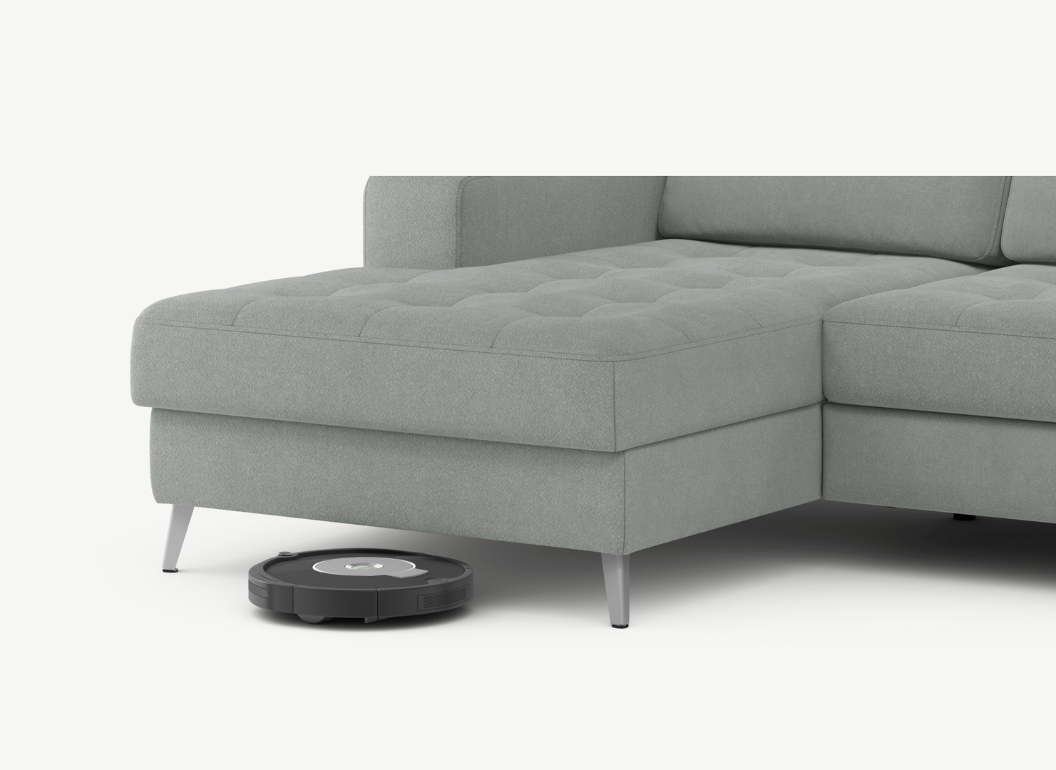 Благодаря высоким наклонным опорам под диваном проходит робот-пылесос и легко проводится влажная уборка, что обеспечивает чистоту и порядок в доме.