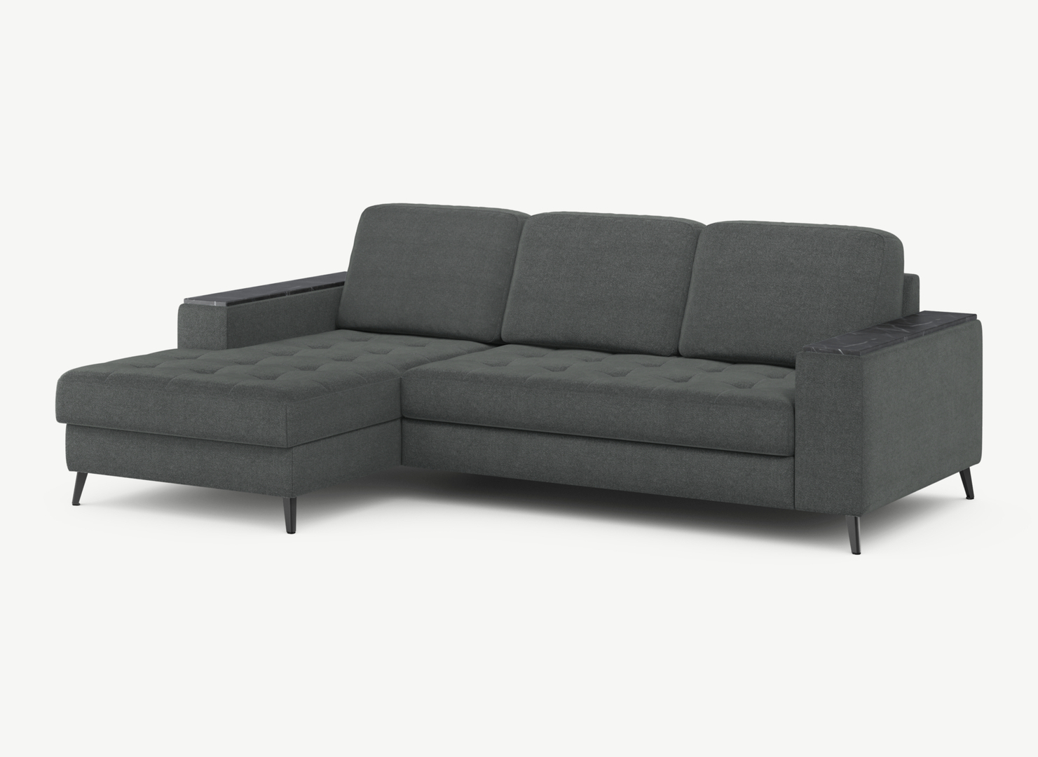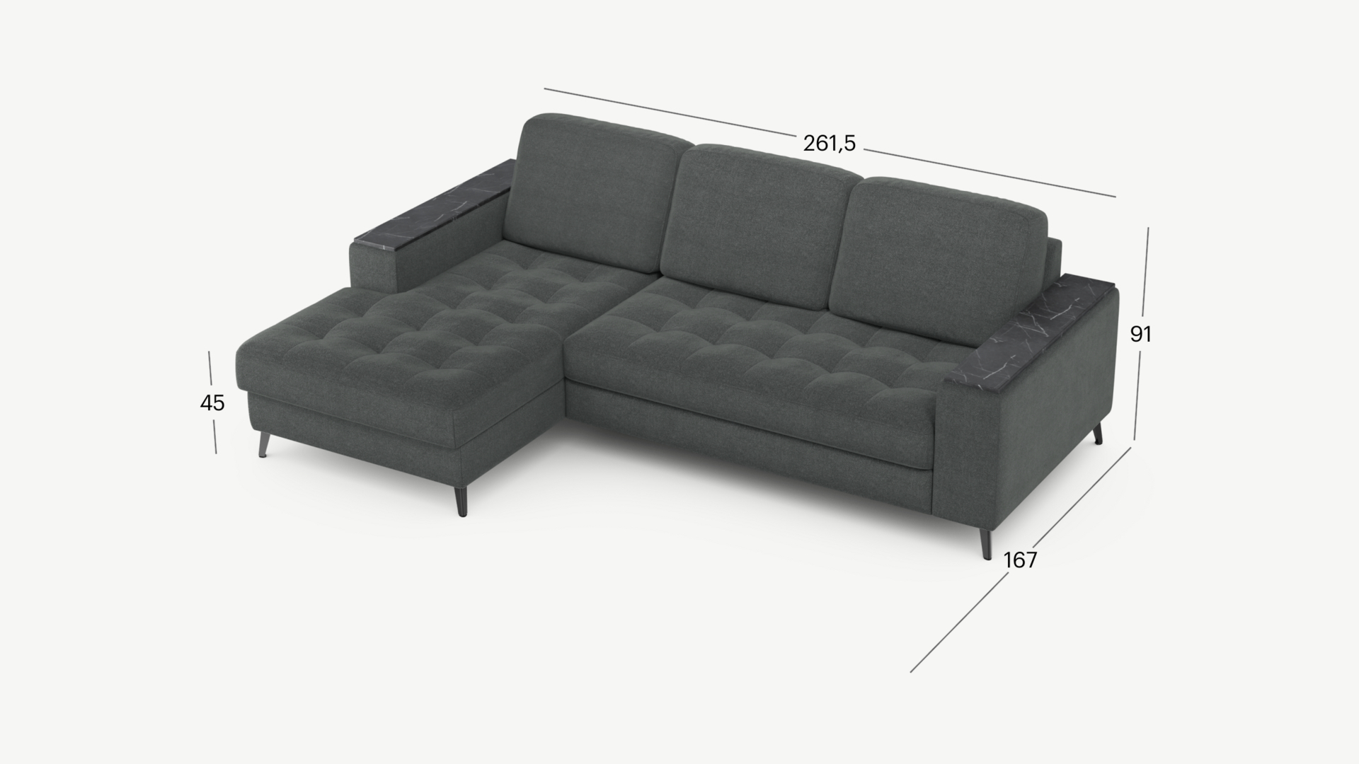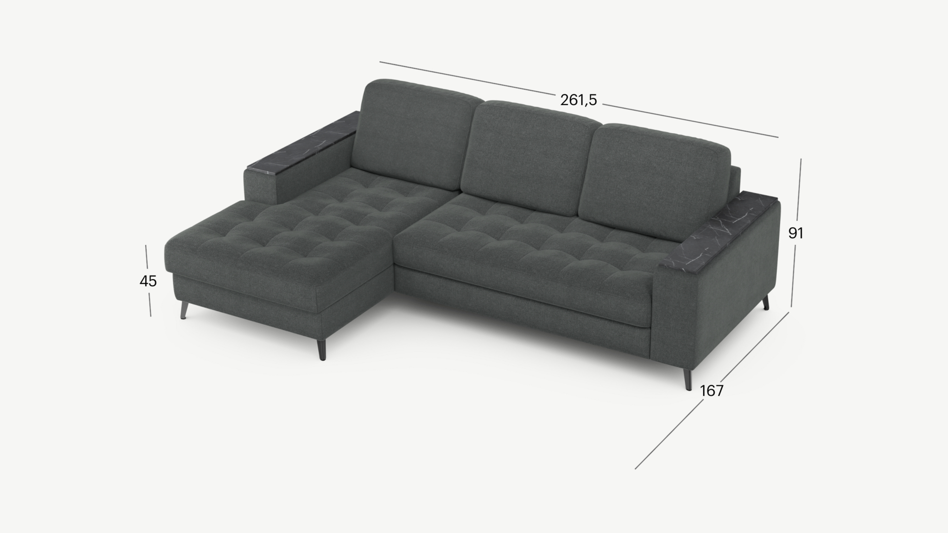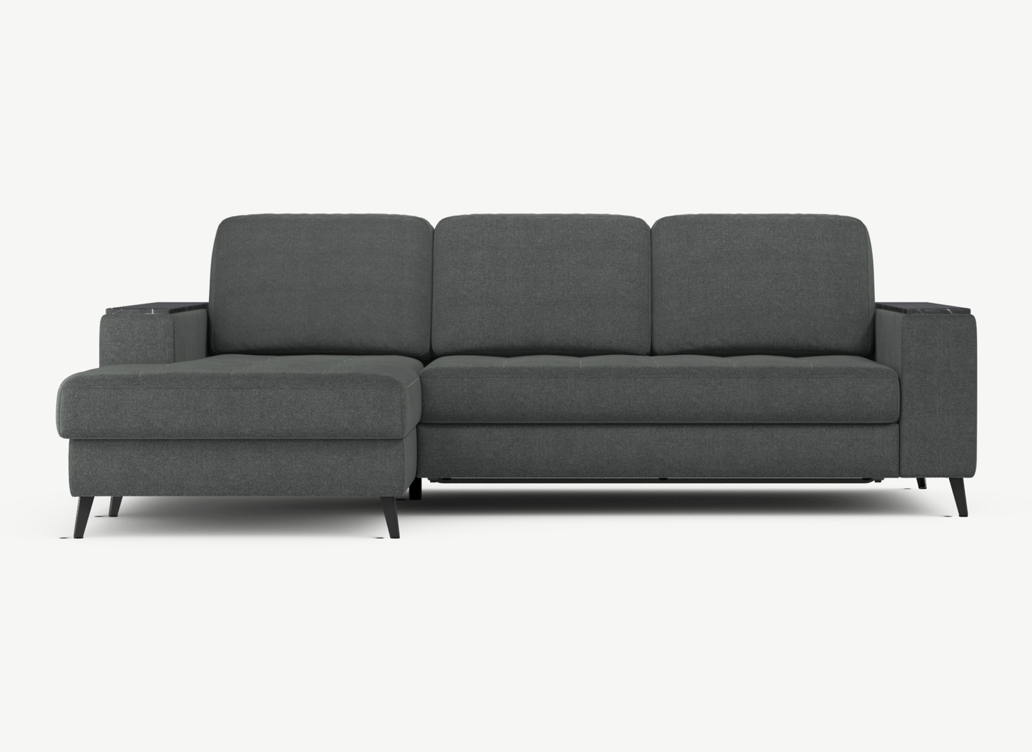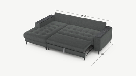 Секция «канапе» обеспечивает дополнительное пространство для отдыха, благодаря которому Вы можете располагаться с максимальным комфортом, удобно вытянув ноги. Под данной секцией расположен вместительный бельевой короб.