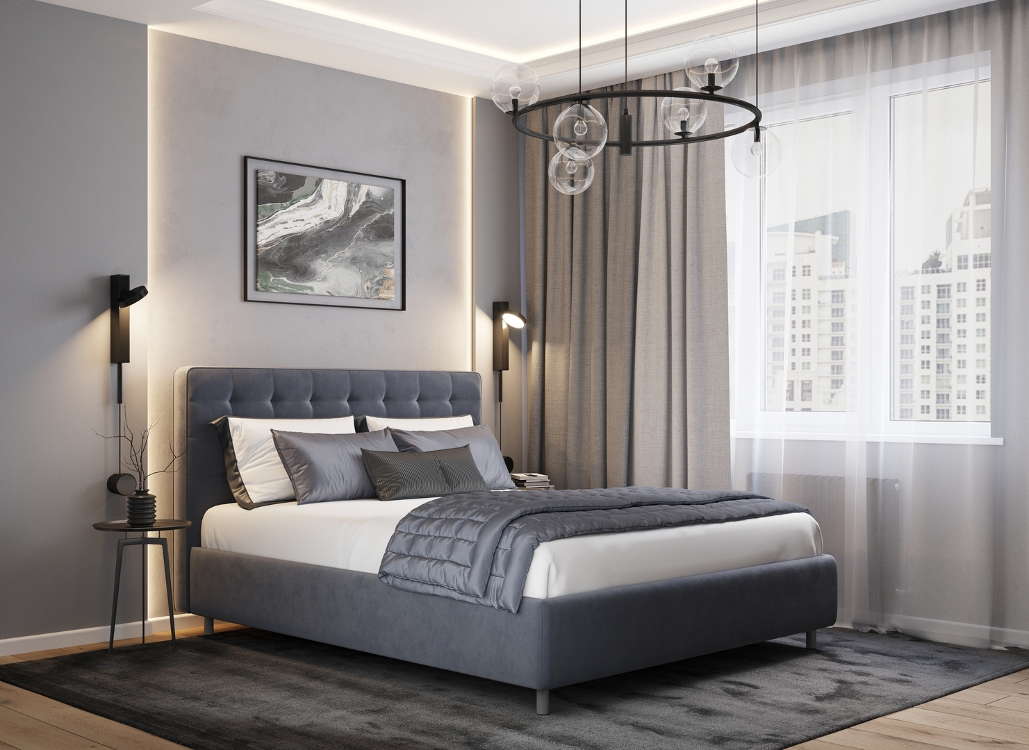 Оформите образ кровати, выбирая обивочный материал, который подчеркнет звучание Вашей спальни и отразит Ваш вкус. Обратите внимание на однотонный гладкий велюр, который усиливает объемную фактуру стежки.