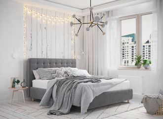 Оформите образ кровати, выбирая обивочный материал, который подчеркнет звучание Вашей спальни и отразит Ваш вкус. Обратите внимание на однотонный гладкий велюр, который усиливает объемную фактуру стежки.
