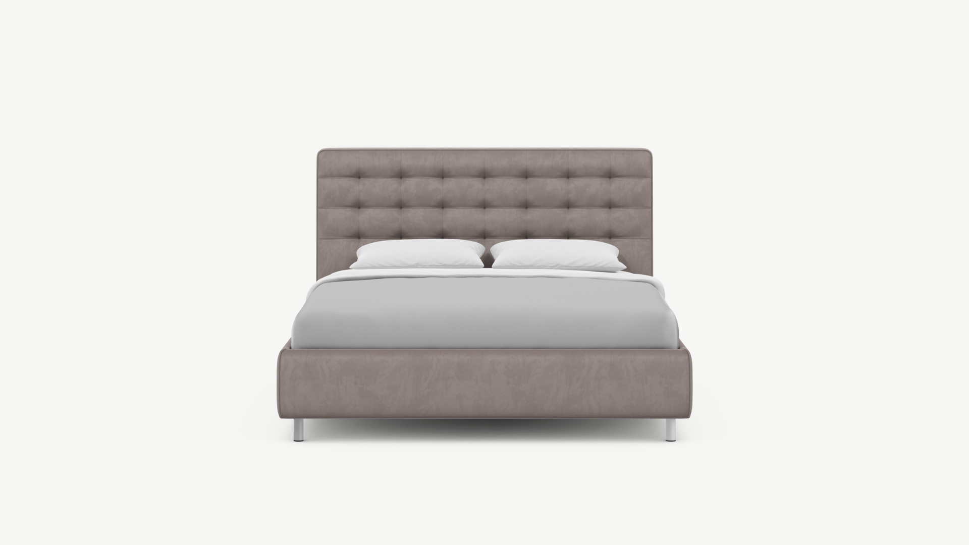 Оформите образ кровати, выбирая обивочный материал, который подчеркнет звучание Вашей спальни и отразит Ваш вкус. Обратите внимание на однотонный гладкий велюр, который усиливает объемную фактуру стежки.