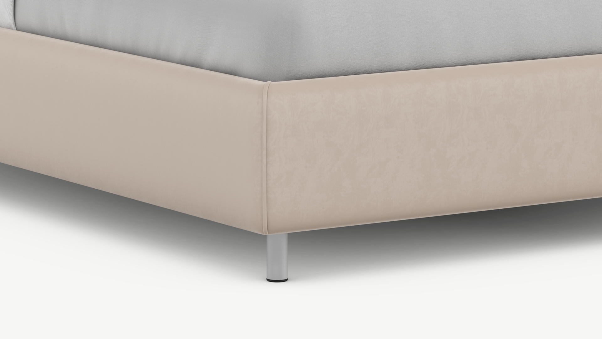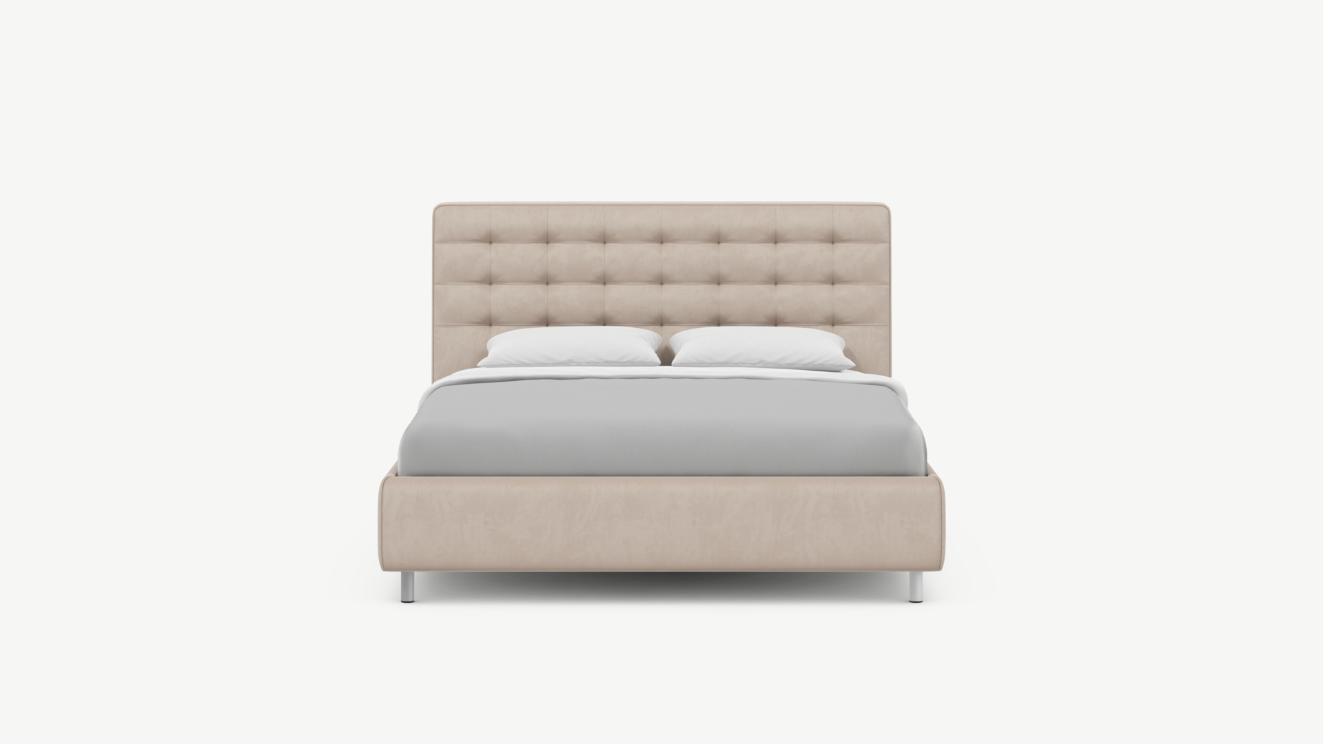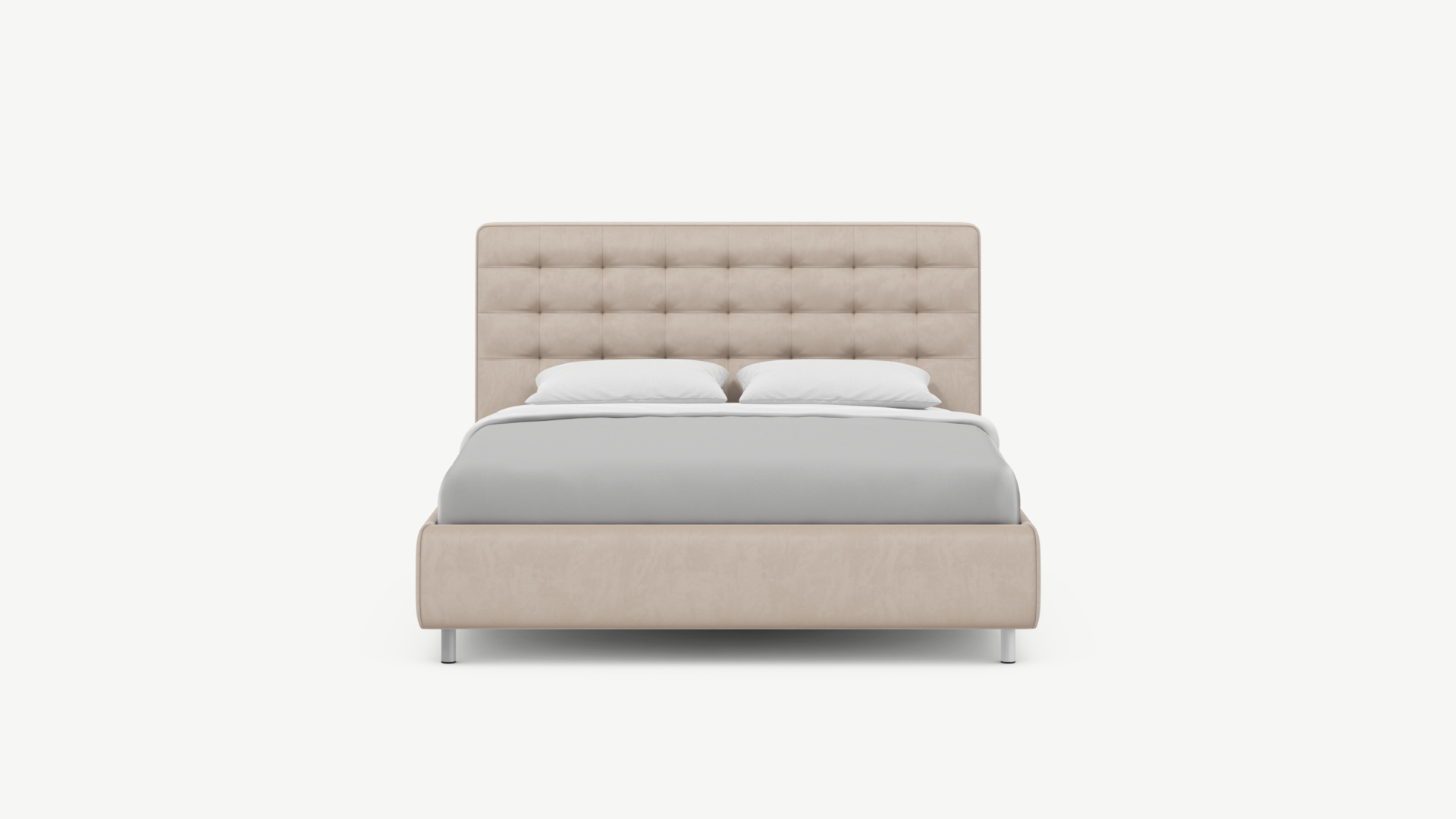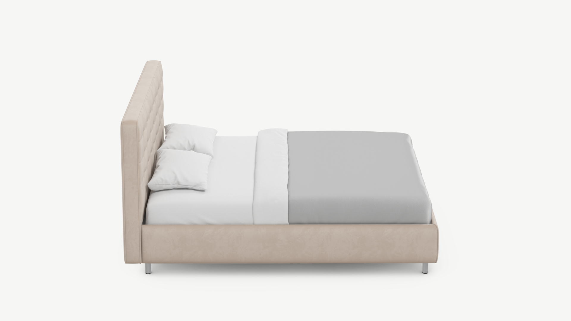 Оформите образ кровати, выбирая обивочный материал, который подчеркнет звучание Вашей спальни и отразит Ваш вкус. Обратите внимание на однотонный гладкий велюр, который усиливает объемную фактуру стежки.
