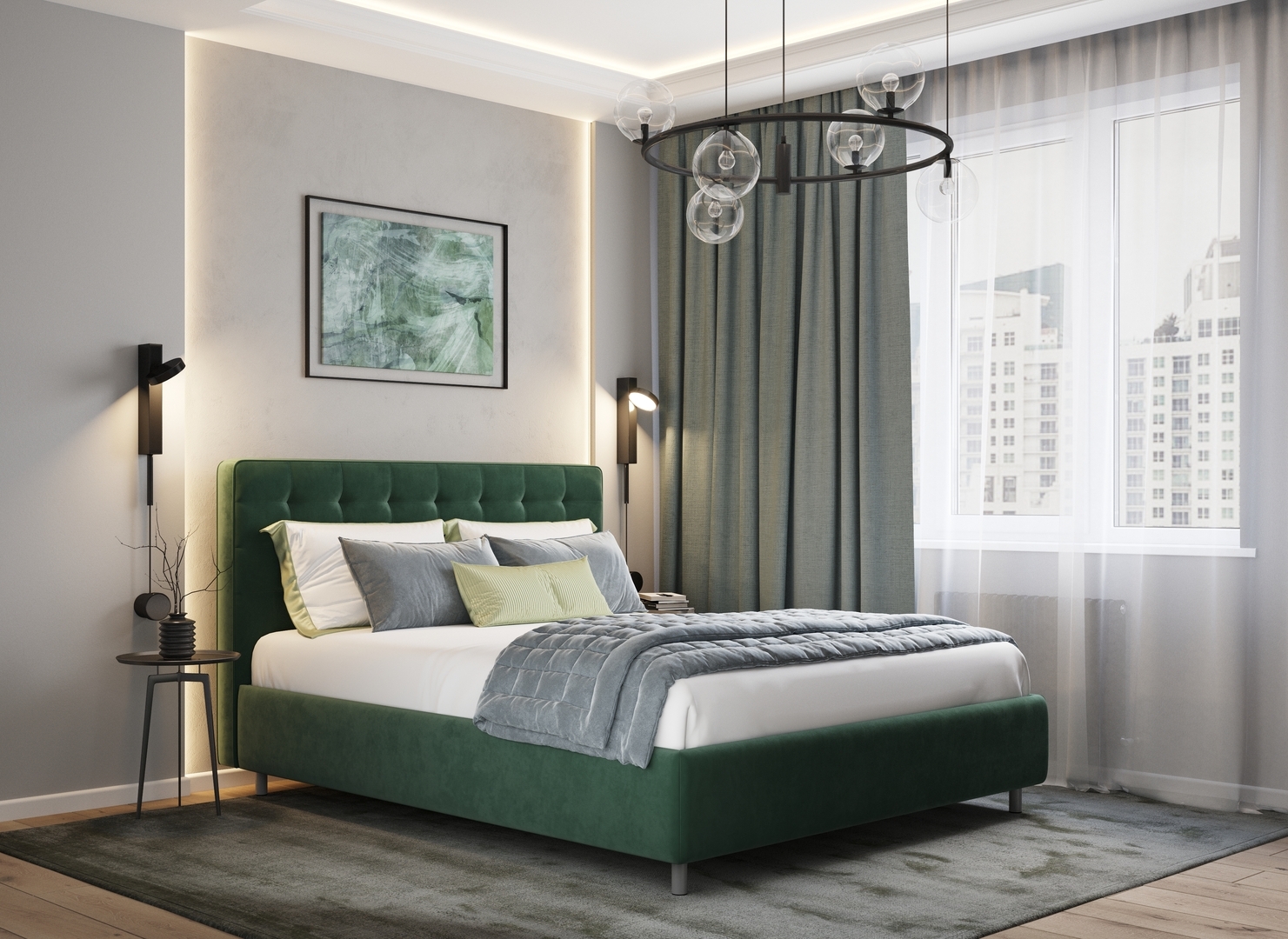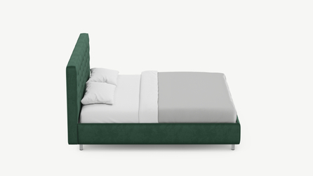 Оформите образ кровати, выбирая обивочный материал, который подчеркнет звучание Вашей спальни и отразит Ваш вкус. Обратите внимание на однотонный гладкий велюр, который усиливает объемную фактуру стежки.