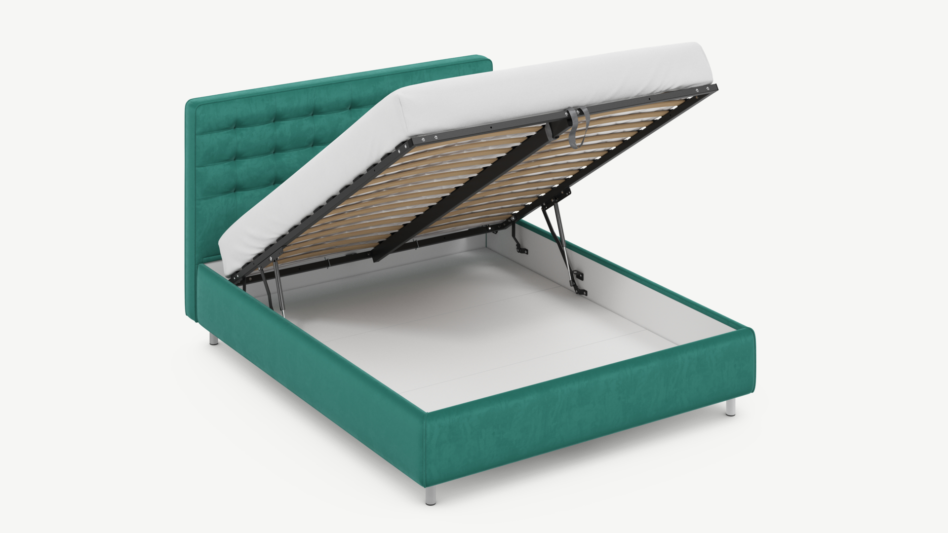 • Скрытая под основанием вместительная емкость без внутренних перегородок позволяет использовать всю площадь подкроватного пространства для хранения вещей.