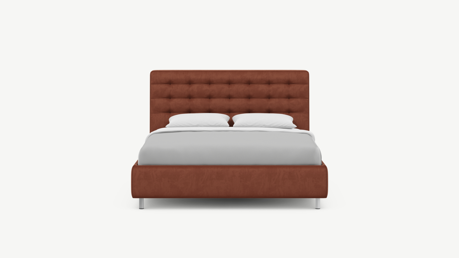 Оформите образ кровати, выбирая обивочный материал, который подчеркнет звучание Вашей спальни и отразит Ваш вкус. Обратите внимание на однотонный гладкий велюр, который усиливает объемную фактуру стежки.