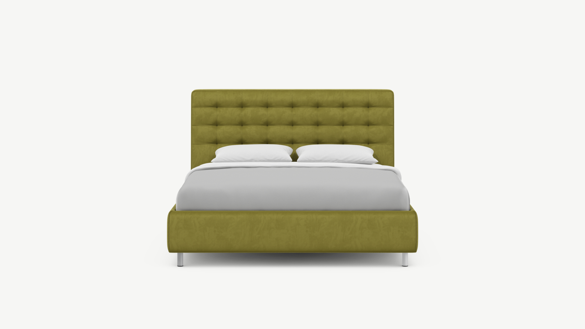 Оформите образ кровати, выбирая обивочный материал, который подчеркнет звучание Вашей спальни и отразит Ваш вкус. Обратите внимание на однотонный гладкий велюр, который усиливает объемную фактуру стежки.