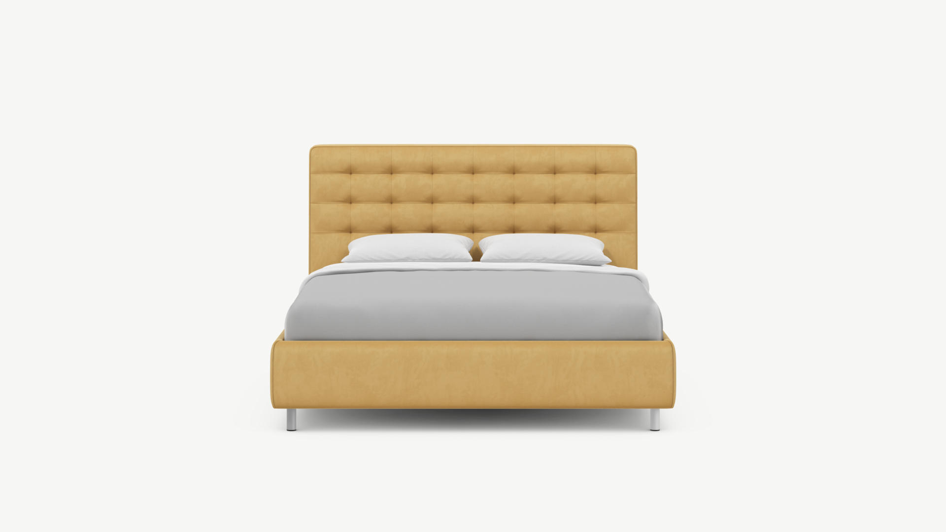 Оформите образ кровати, выбирая обивочный материал, который подчеркнет звучание Вашей спальни и отразит Ваш вкус. Обратите внимание на однотонный гладкий велюр, который усиливает объемную фактуру стежки.