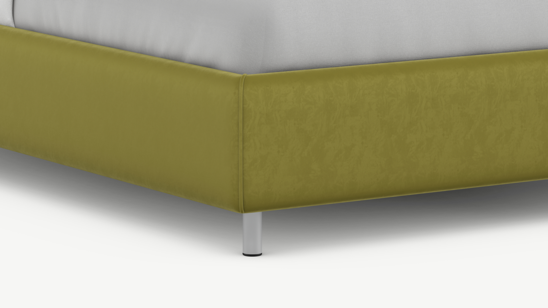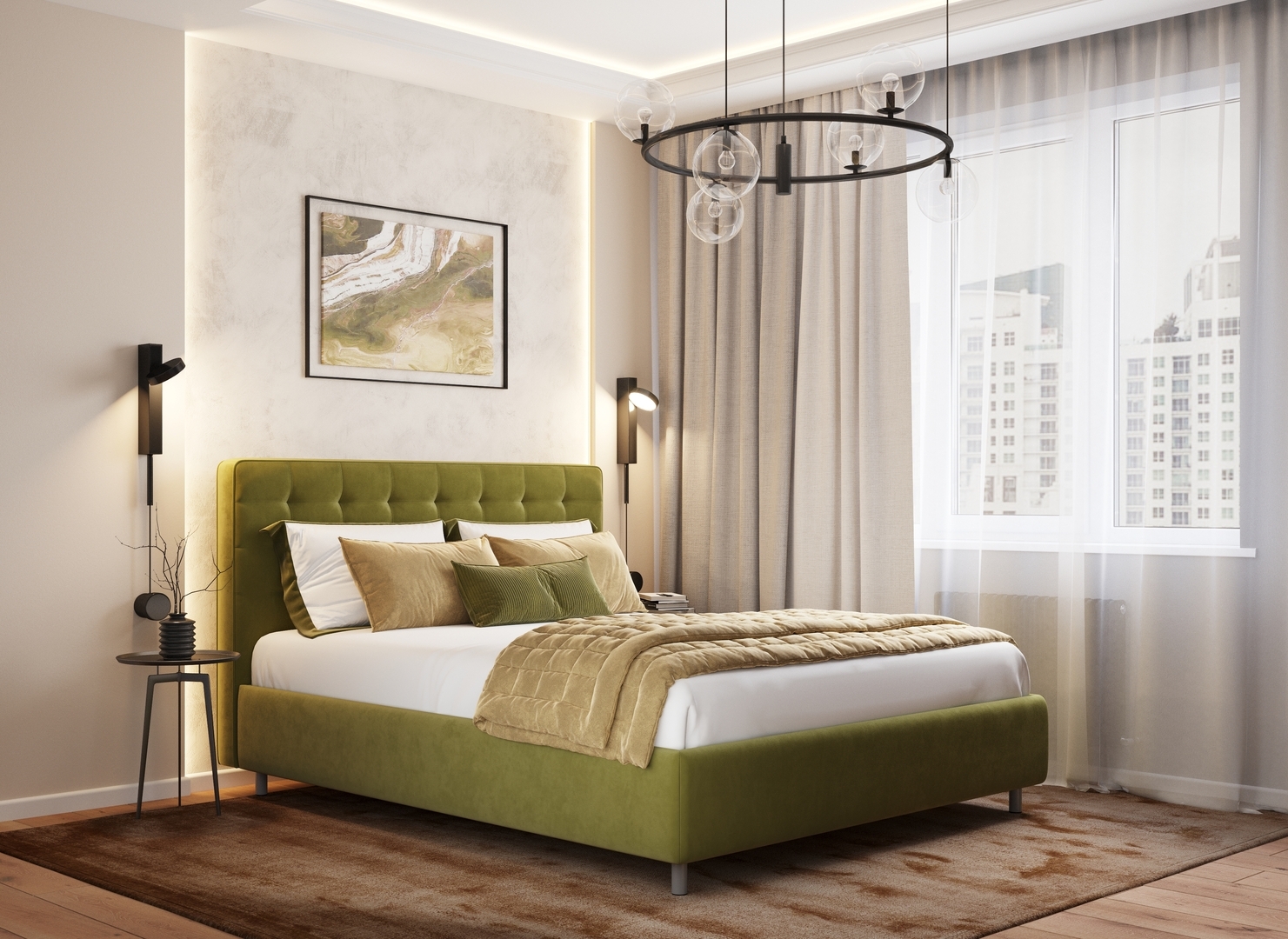 Оформите образ кровати, выбирая обивочный материал, который подчеркнет звучание Вашей спальни и отразит Ваш вкус. Обратите внимание на однотонный гладкий велюр, который усиливает объемную фактуру стежки.