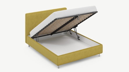 • Скрытая под основанием вместительная емкость без внутренних перегородок позволяет использовать всю площадь подкроватного пространства для хранения вещей.