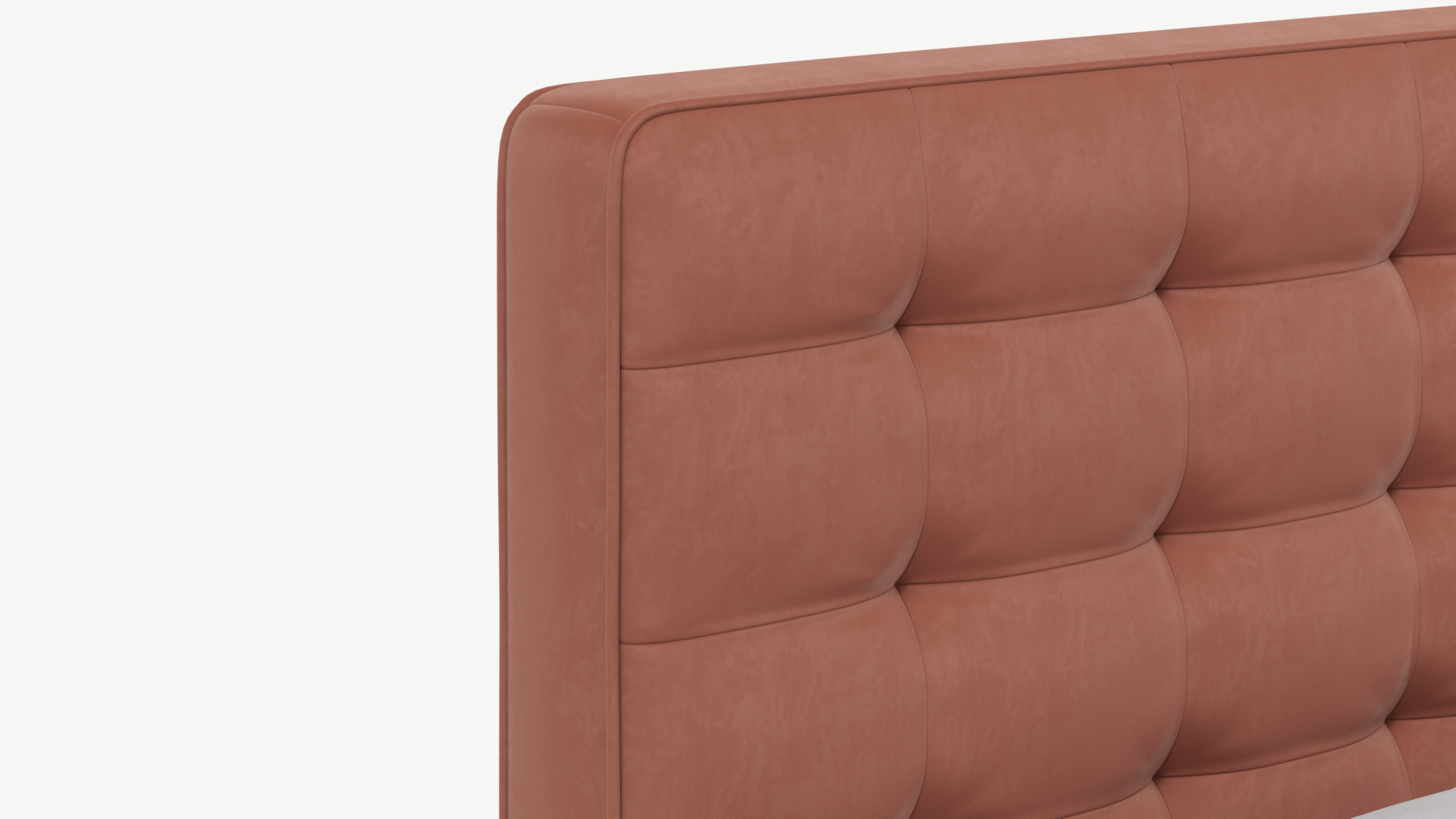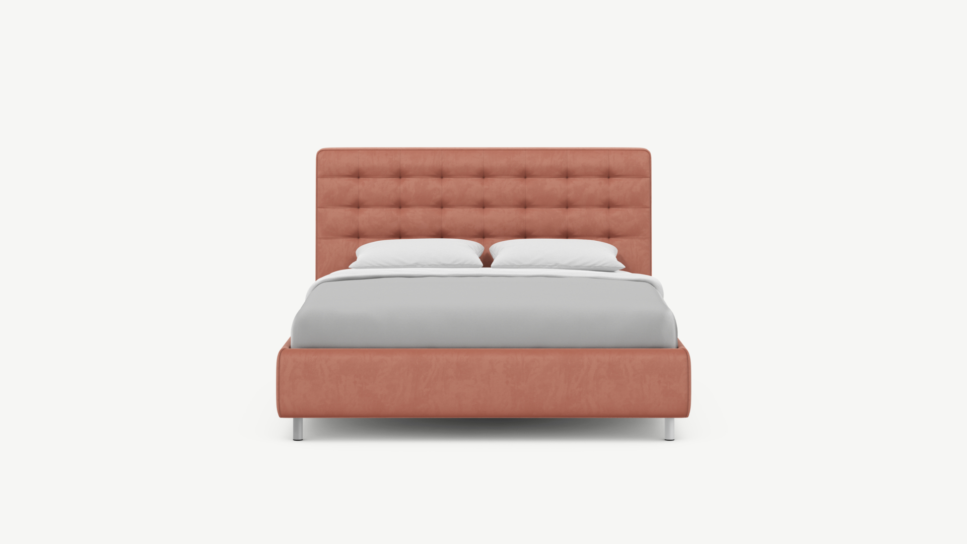 Оформите образ кровати, выбирая обивочный материал, который подчеркнет звучание Вашей спальни и отразит Ваш вкус. Обратите внимание на однотонный гладкий велюр, который усиливает объемную фактуру стежки.