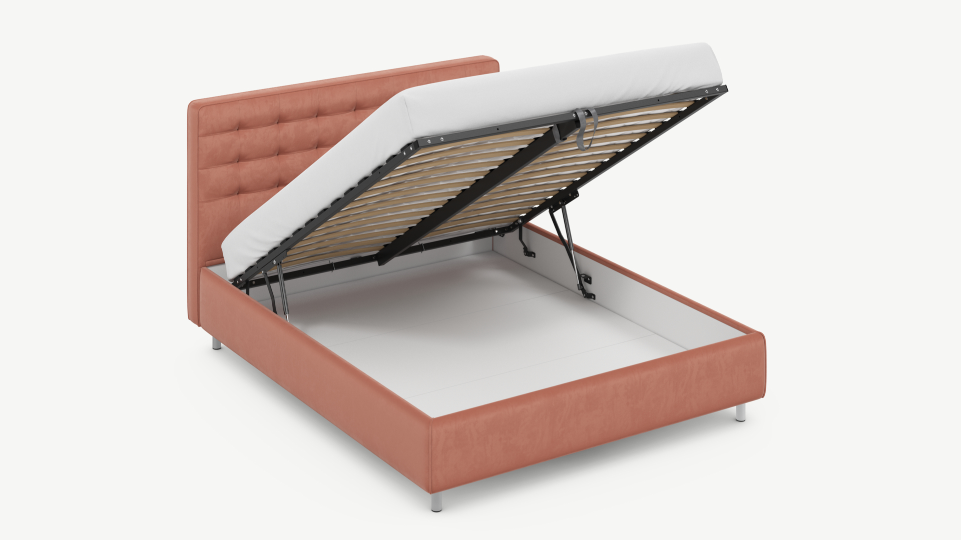 - Скрытая под основанием вместительная емкость без внутренних перегородок позволяет использовать всю площадь подкроватного пространства для хранения вещей.