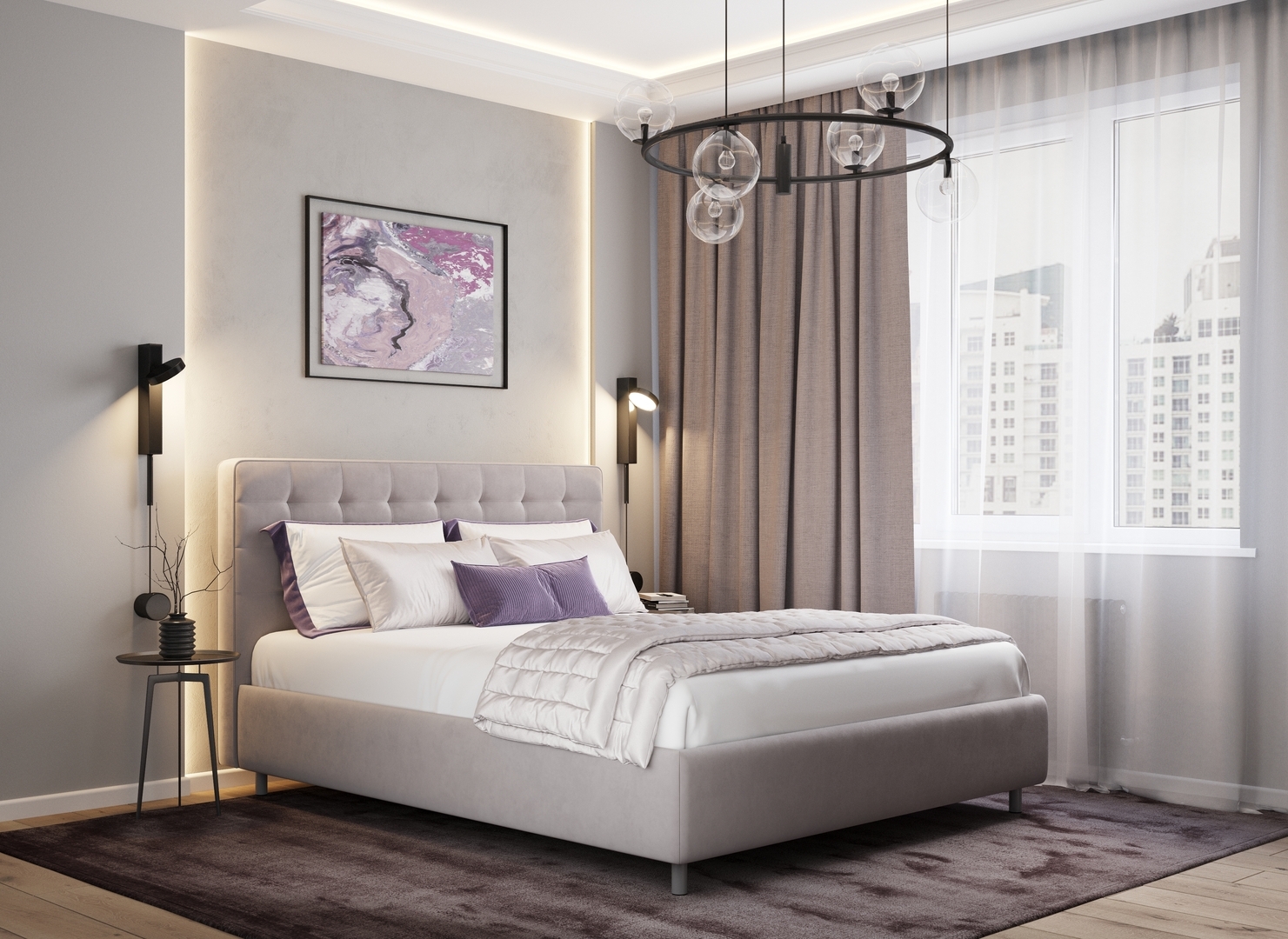 Оформите образ кровати, выбирая обивочный материал, который подчеркнет звучание Вашей спальни и отразит Ваш вкус. Обратите внимание на однотонный гладкий велюр, который усиливает объемную фактуру стежки.