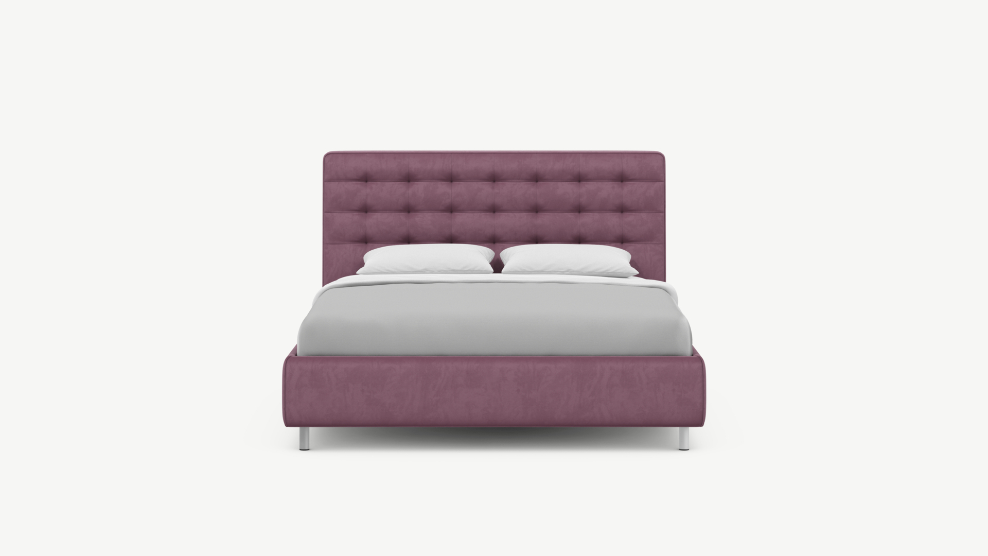 Оформите образ кровати, выбирая обивочный материал, который подчеркнет звучание Вашей спальни и отразит Ваш вкус. Обратите внимание на однотонный гладкий велюр, который усиливает объемную фактуру стежки.
