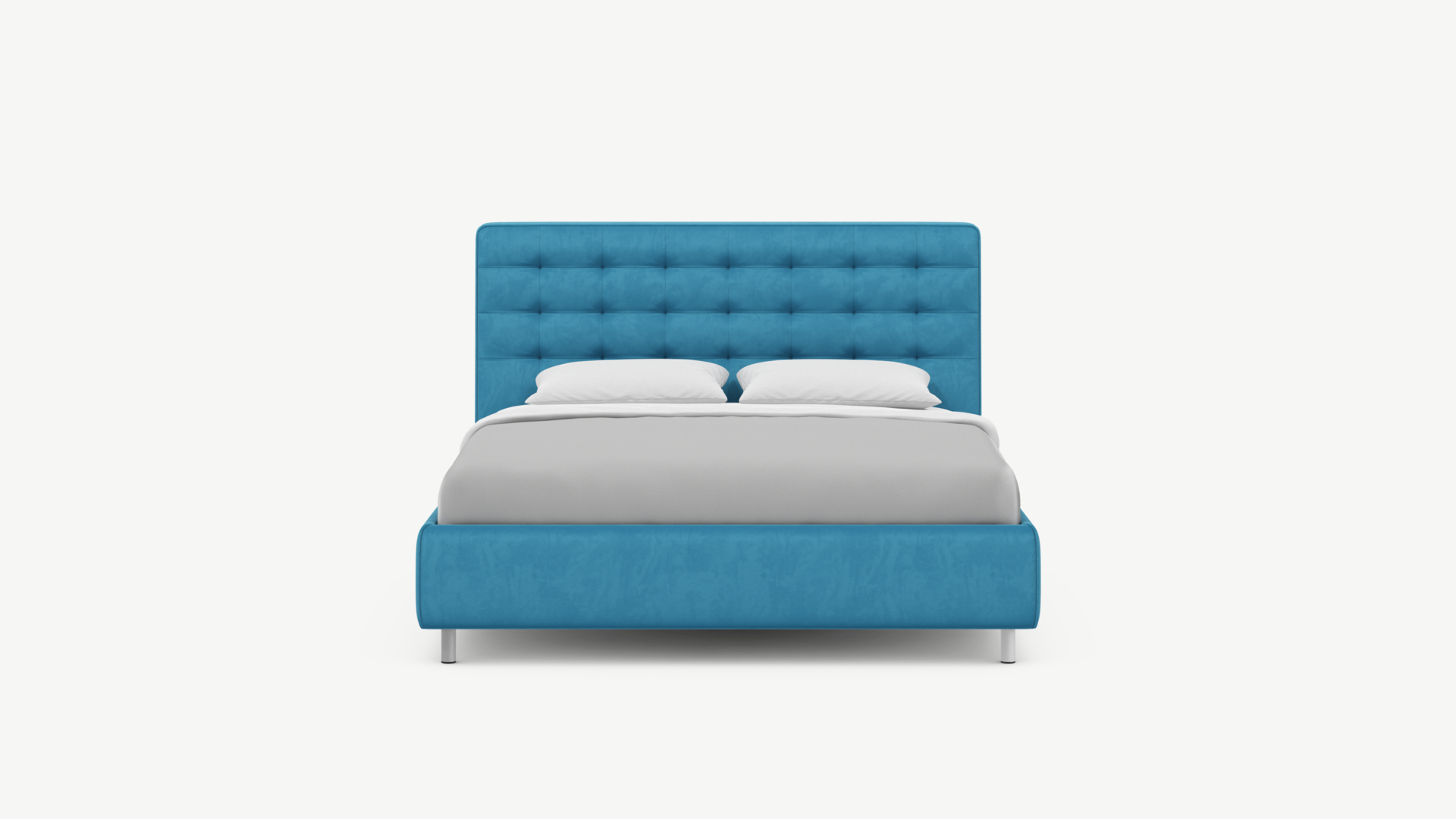 Заказали кровать с подушками-валиками, очень необычный дизайн нам показался. Выбрали высокие опоры для удобства в уборке, а изголовье не стали брать высокое, больше понравился низкий вариант. Приятно, что в магазине большой выбор тканей и цветов. Мы выбрали яркий бирюзовой, в нашей комнате кровать выглядит просто потрясающе! Кровать стала ярким акцентом. Это очень круто, что компания дает возможность сделать интерьер таким, как хочется. По качеству также нет претензий. Обита ровно, ни складок не, ни неровностей. Ламели ровные, матрас на них лежит идеально. Мы остались довольны, всем рекомендуем к покупке.
