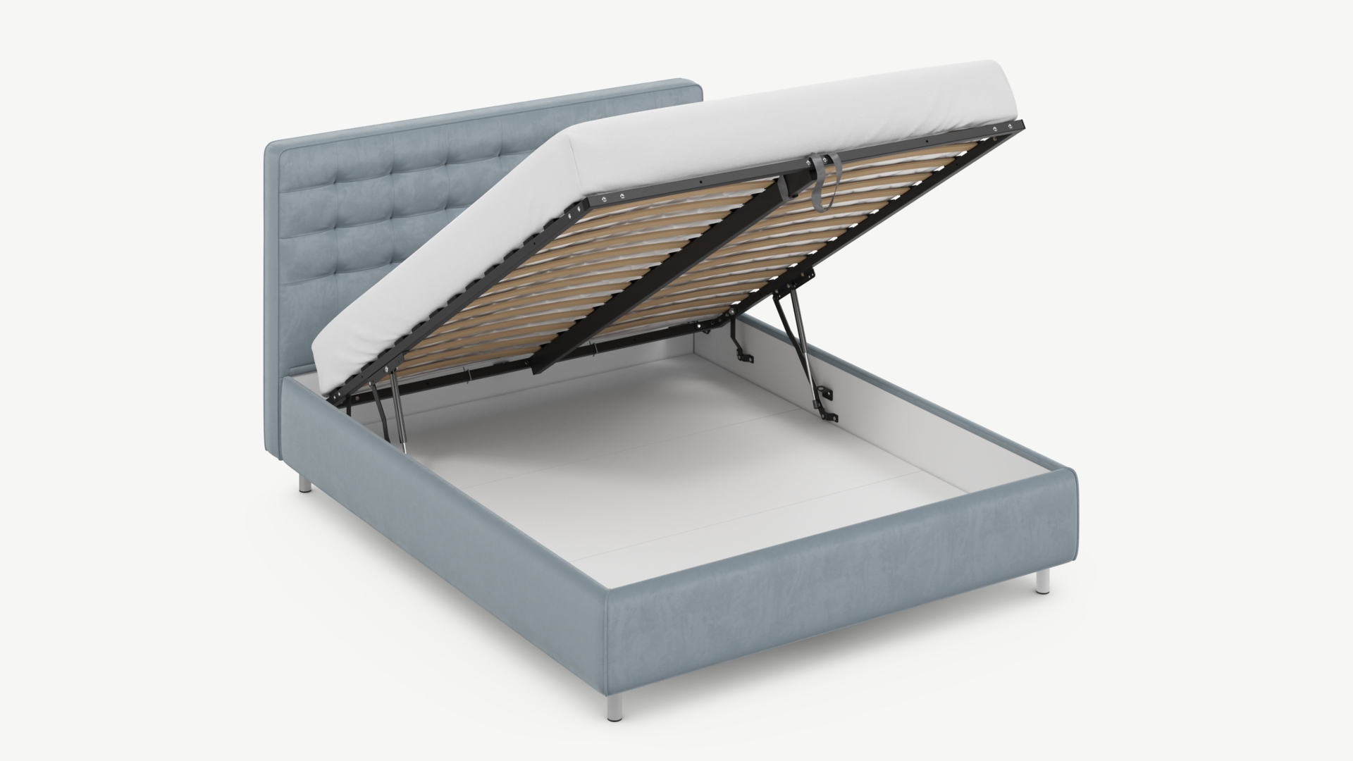 • Скрытая под основанием вместительная емкость без внутренних перегородок позволяет использовать всю площадь подкроватного пространства для хранения вещей.