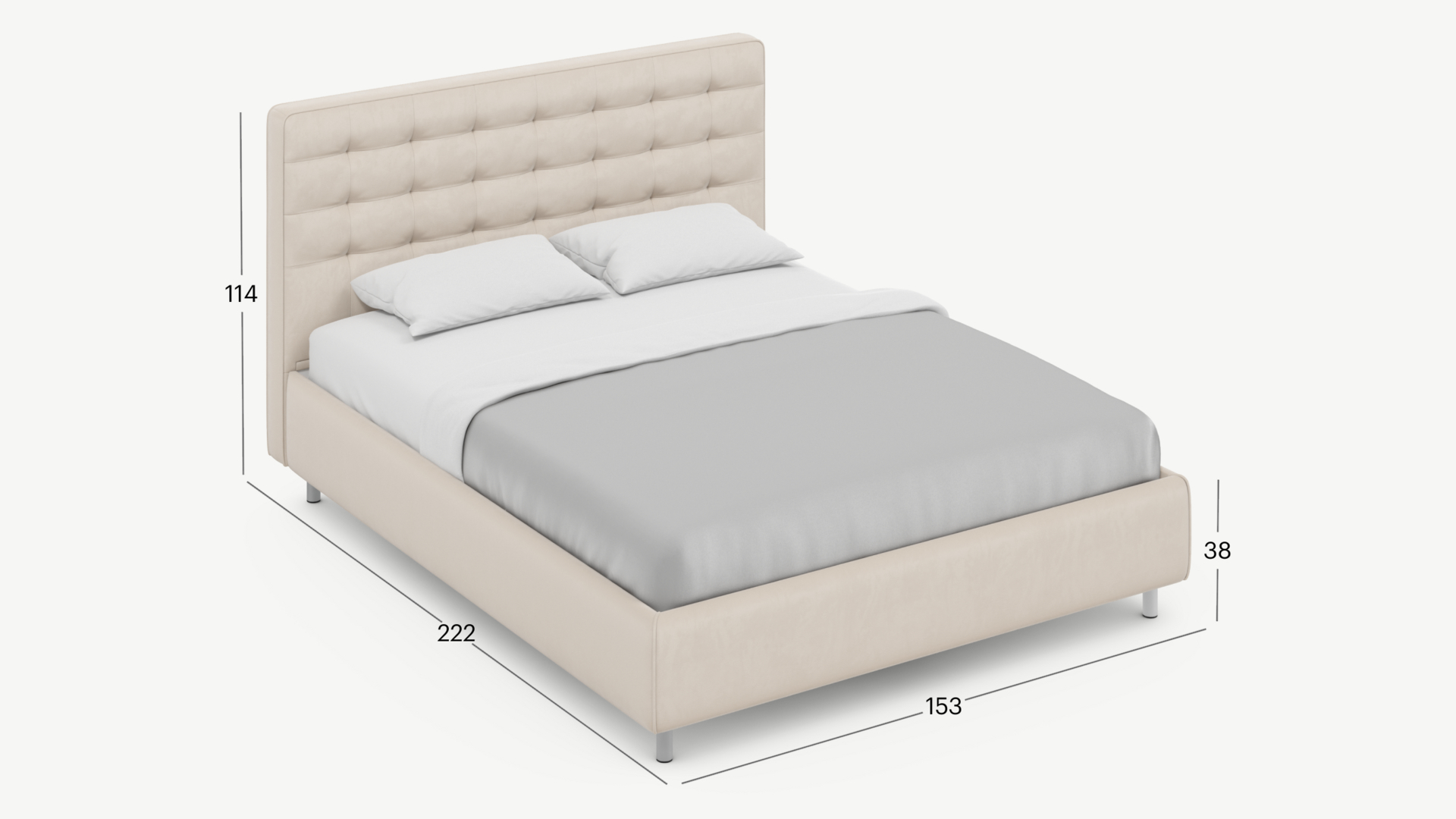 Изголовье подчеркивает эстетику MOON 1165, а также дарит дополнительный комфорт и уют спальному месту. Высота изголовья 105 см позволяет эстетически сбалансировать вид спального места.