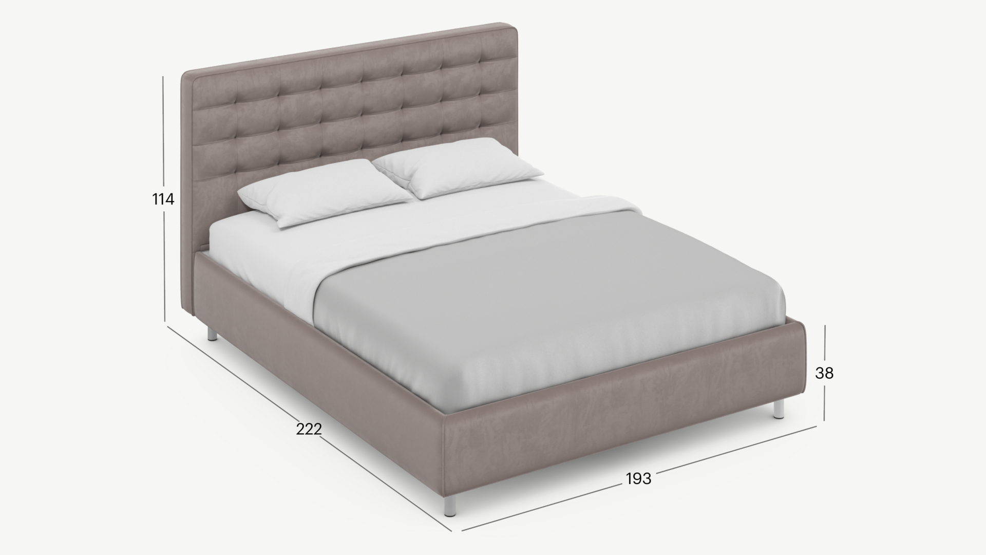 Оформите образ кровати, выбирая обивочный материал, который подчеркнет звучание Вашей спальни и отразит Ваш вкус. Обратите внимание на однотонный гладкий велюр, который усиливает объемную фактуру стежки.