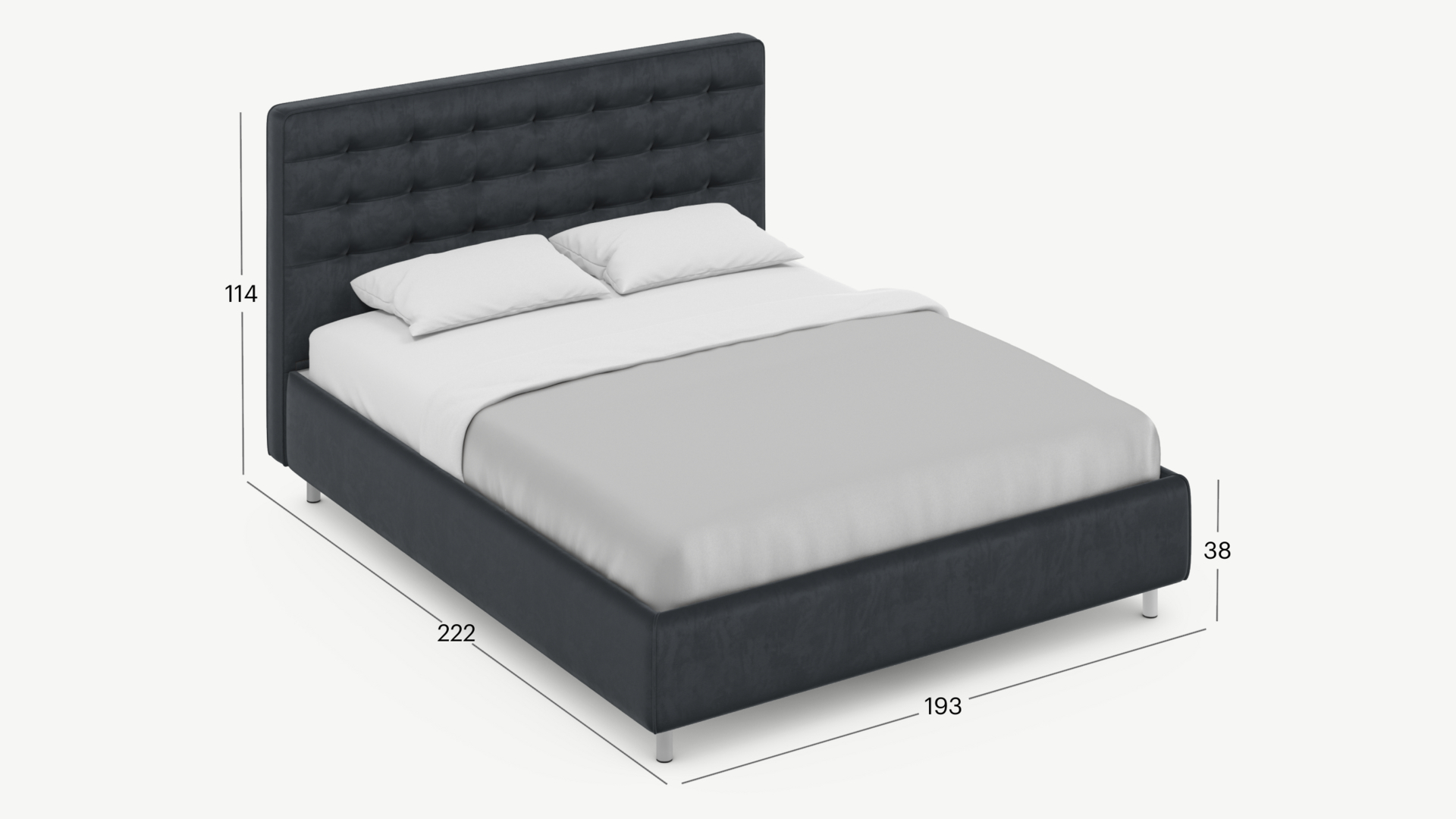 Оформите образ кровати, выбирая обивочный материал, который подчеркнет звучание Вашей спальни и отразит Ваш вкус. Обратите внимание на однотонный гладкий велюр, который усиливает объемную фактуру стежки.