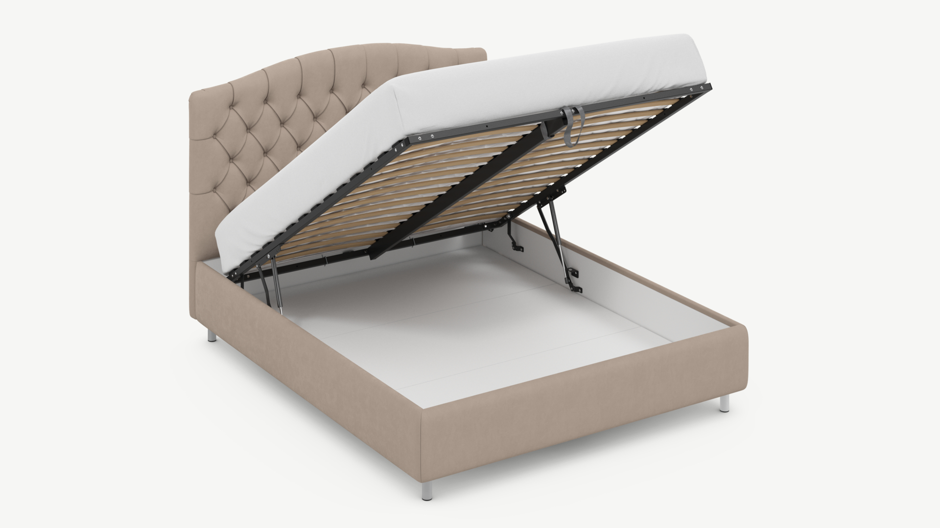 - Скрытая под основанием вместительная емкость без внутренних перегородок позволяет использовать всю площадь подкроватного пространства для хранения вещей.
