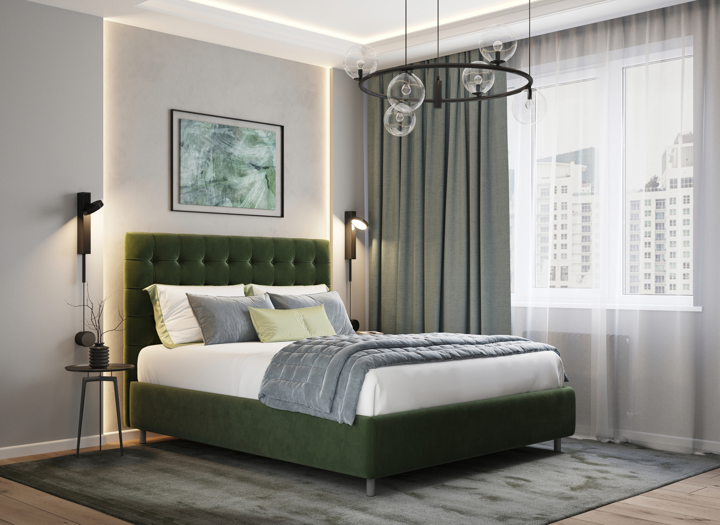 Разнообразие цветовой палитры позволит подобрать желаемый оттенок обивочной ткани. Использование светлых цветов поддержит настроение стиля «Сканди». Приглушенные насыщенные оттенки оформят кровать в стиле «Лофт». Нейтральные оттенки в цвет интерьера обыграют спальню в Современном стиле.