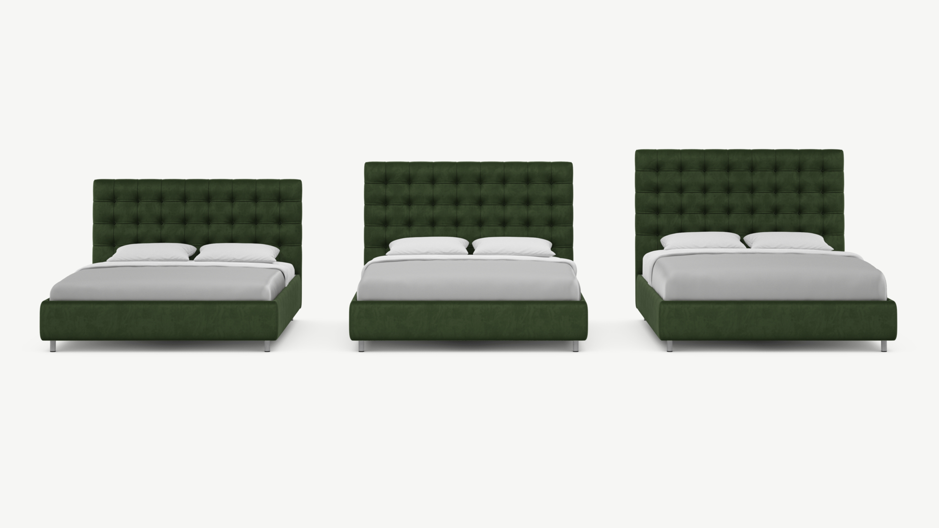 Творческий подход к выбору обивочного материала меняет образ дизайна. Например, однотонный гладкий велюр придает кровати эстетическую утонченность, в то время как фактурное тиснение на ткани усиливает игру перехода оттенков и выглядит особенно оригинально. Оформите образ кровати, выбирая обивку, которая подчеркнет звучание Вашей спальни и отразит Ваш вкус.