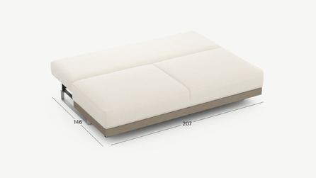 Механизм трансформации «Пантограф» подходит для ежедневного использования. Позволяет легко раскладывать и складывать диван, обеспечивая минимальный контакт дополнительных опор с напольным покрытием. Диван стоит на прямоугольных опорах, в то время как дополнительные остаются скрытыми, появляясь плавно и бесшумно в единственно нужный момент — при трансформации дивана в кровать.