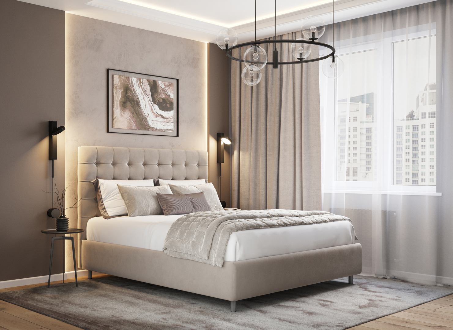 Творческий подход к выбору обивочного материала меняет образ дизайна. Например, однотонный гладкий велюр придает кровати эстетическую утонченность, в то время как фактурное тиснение на ткани усиливает игру перехода оттенков и выглядит особенно оригинально. Оформите образ кровати, выбирая обивку, которая подчеркнет звучание Вашей спальни и отразит Ваш вкус.