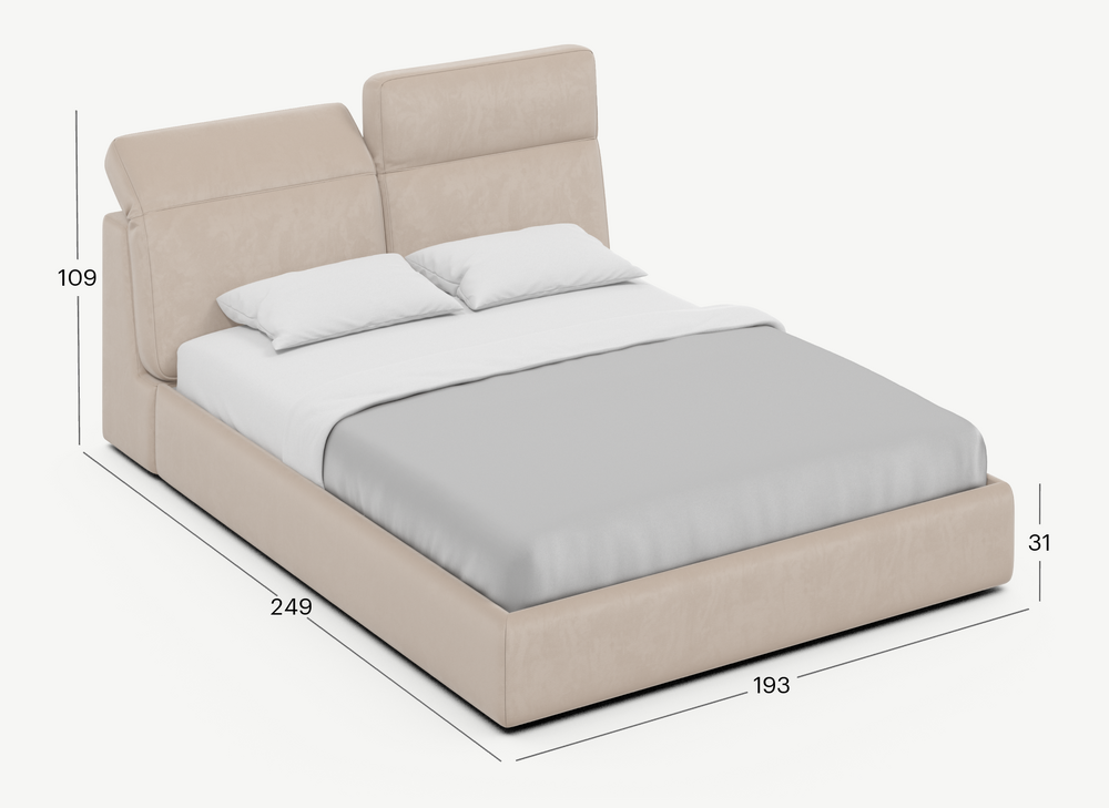 Пять вариантов наклона подушек изголовья поможет максимально удобно разместиться на кровати за чтением книг или просмотром ТВ. Фиксация подушек в вертикальном положении формирует традиционный образ кровати, в горизонтальном – ультрамодный.