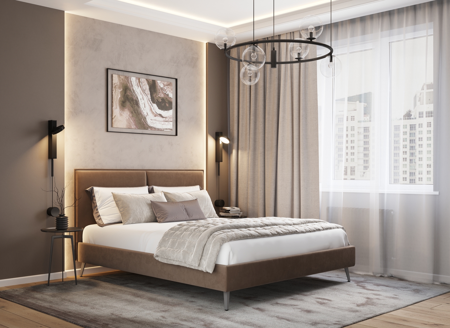 Оформите образ кровати, выбирая обивочный материал, который подчеркнет стиль Вашей спальни и отразит Ваш вкус. Использование светлых цветов поддержит настроение стиля «Сканди». Нейтральные оттенки в цвет интерьера обыграют спальню в Современном стиле.