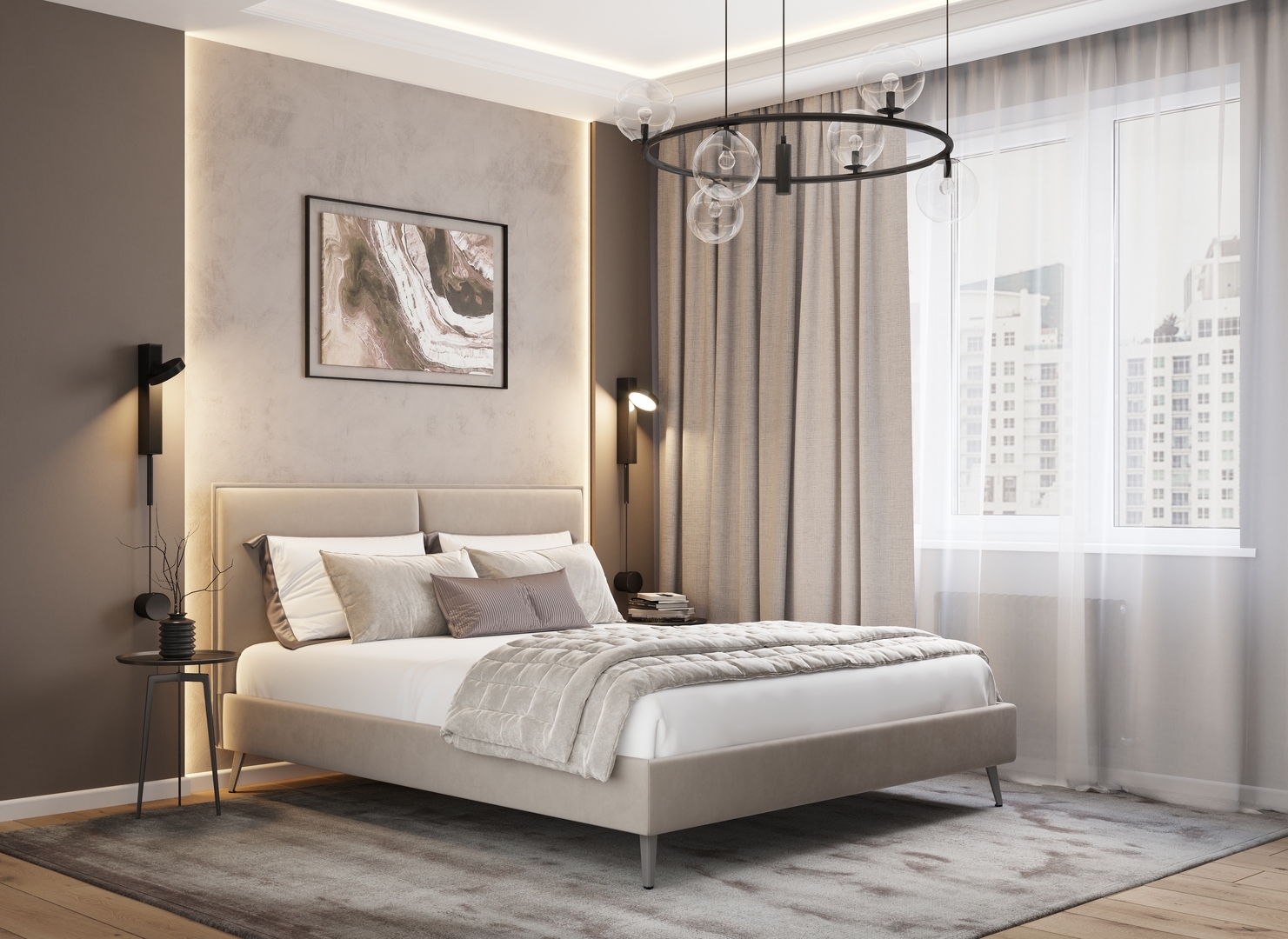 Оформите образ кровати, выбирая обивочный материал, который подчеркнет стиль Вашей спальни и отразит Ваш вкус. Использование светлых цветов поддержит настроение стиля «Сканди». Нейтральные оттенки в цвет интерьера обыграют спальню в Современном стиле.
