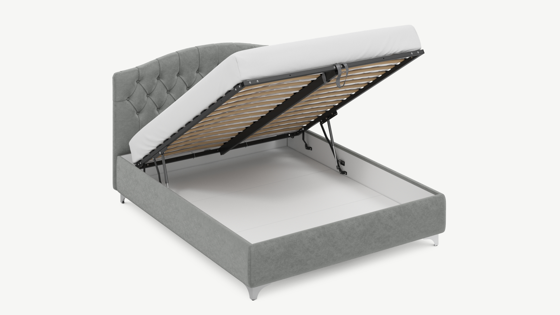 • Скрытая под основанием вместительная емкость без внутренних перегородок позволяет использовать всю площадь подкроватного пространства для хранения вещей.